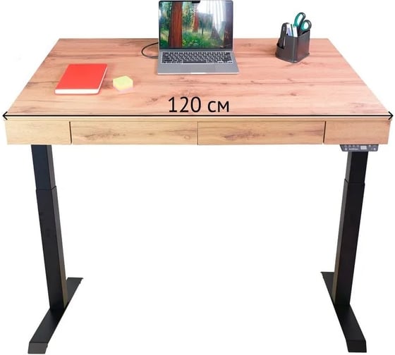 Дизайн-стол с регулируемой высотой StolStoya Крылов: рама MOTOR UP черная и ЛДСП Дуб Лофт SEK-PE211B-Loft