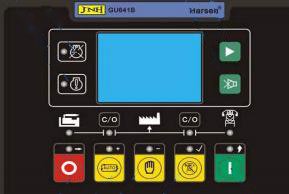 Функциональная панель управления Система управления реализована на базе цифрового контроллера Harsen серии GU641 и выполняет следующие функции: автоматический пуск/останов, измерение параметров сети и работы электростанции, сигнализация о нежелательных условиях, отключение станции при возникновении критических ситуаций. |