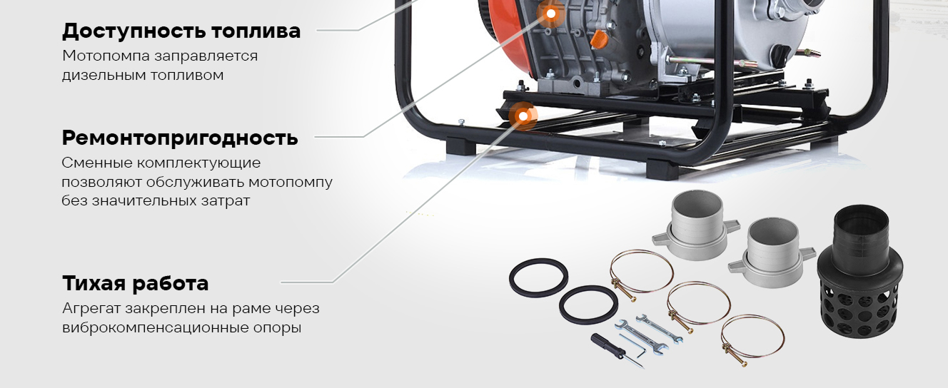 - Качественные и надежные мотопомпы среднего ценового диапазона, что делает их доступными в любой ситуации