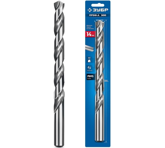 Длинное сверло ЗУБР ПРОФ-А 300 (14х300 мм; Р6М5) по металлу, класс А 29624-14-300