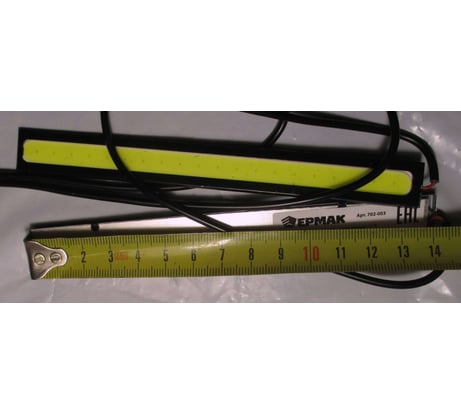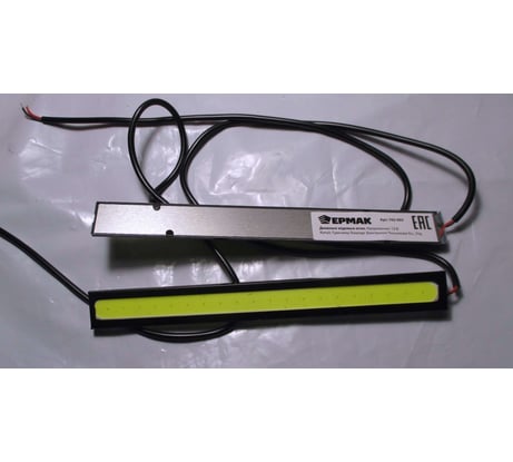 Экономичные бескорпусные светодиодные ходовые огни. В качестве ДХО вряд-ли подойдут, для этого у них недостаточная мощность свечения и нет влагозащищённого корпуса. Разве что установить такой внутрь блок-фары. Однако неплохо смогут работать в качестве 12V LED источников освещения, например, в багажнике или салоне автомобиля. Или в помещении, если питать их от маломощного внешнего 12V источника питания. Каждый светильник весит порядка 12 гр, измеренная длина 14 см, ширина 1.5 см, ток потребления для одного составил около 171 mA.