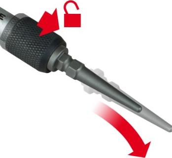 Многофункциональность Наконечник легко переставляется и извлекается, что позволяет использовать вместо него отверточные вставки с шестигранным хвостовиком 1/4". |