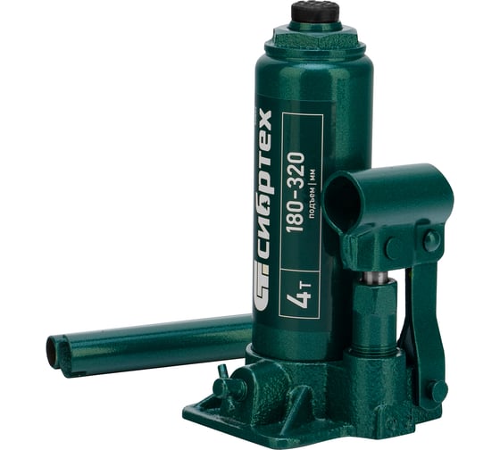 Домкрат гидравлический бутылочный Сибртех 50802 предназначен для подъема грузов массой до 4 т на высоту от 180 до 320 мм. Не требует больших усилий от пользователя и значительно облегчает рабочий процесс. Домкрат будет полезен при проведении техобслуживания машины в автосервисе или гараже.