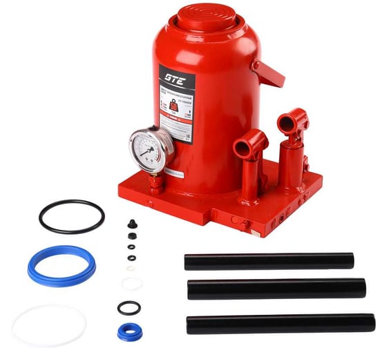 Гидравлический бутылочный домкрат GTE-TH950001B — высококачественное силовое оборудование для выполнения подъемных работ при диагностике и ремонте автомобиля в автосервисах, шиномонтажах и автотранспортных предприятиях. Гидравлический домкрат с ручным приводом способен поднимать различные виды грузов и транспортных средств до50тонн, обеспечивая надежную и безопасную процедуру подъема.