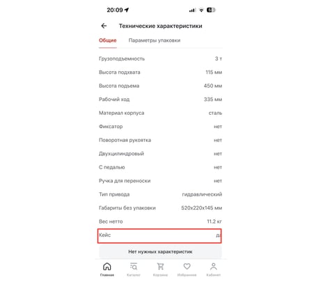 Нет кейса как заявлено в характеристиках! Консультант в маназине сказал, что прдавец может менять комплектацию при этом не уведомлять об этом покупателя! Хотя домкрат этой же фирмы, но меньше грузоподъемностью и высотой подъёма был в кейсе. Я его вернул назад т.к. на нем не хватило высоты подъема, в остальном домкрат очень даже хорош для монтажных работ на автомобиле.
