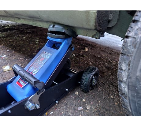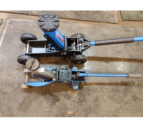 Хороший домкрат с большими колесами. На фото в сравнениисо stels 51132 (2.5т)