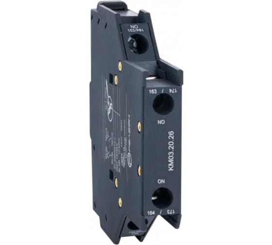 Контактный блок KM03.20.26 предназначен для бокового монтажа на контакторы серии KM3. Устройство оснащено двумя нормально разомкнутыми (2НО) контактами с номинальной нагрузкой 10А, что обеспечивает надежную коммутацию в цепях управления. Блок идеально подходит для организации сложных схем управления в условиях ограниченного пространства.