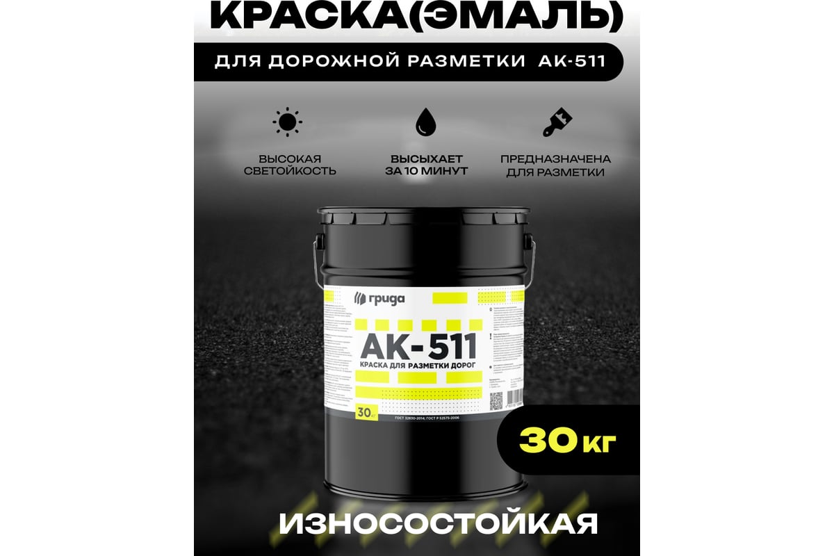Дорожная краска ГРИДА АК-511 черная, 30 кг НФ-00000346