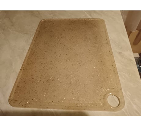 Отличная доска по доступной цене. Только цвет не белый, а в розово-белую крапинку, как на фото. Жене понравилась. С обратной стороны приклеил силиконовые сантехнические прокладки, что бы не скользила по столу.