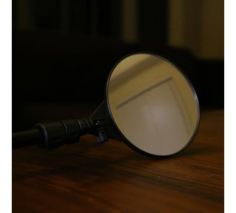 Зеркало поворачивается на все 360 градусов и надежно фиксируется в нужном положении. Качество сборки отличное — даже в условиях постоянной вибрации ничего не разбалтывается