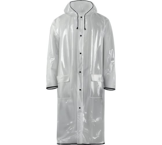 Дождевик-плащ прочный из EVA прозрачный с черным кантом на кнопках с карманами Nadzor 120 мкм 147345