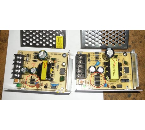 Заказали у китайцев , а этикеток лживых уже своих навешали , на фото элементарно это докажу (если модераторы не зарубят отзыв) у меня один в обин есть БП купленный на АЛИ , он заявляется как 12в 2а 25вт , так вот он куда на более мощной элементарной базе собран , импульсный трансформатор заметно крупнее , выход собран на 4х параллельных диодах шоттки (SR2xx) .а в этом издении на плате предусмотрено место лишь под три таких диода , но в запайке решили ограничится лишь двумя Формально эти диоды до 2а на штуку , но вот почему-то в моем БП на 2а стоит 4 диода , а на купленном сейчас где ток стоит 4,1а поставили лишь2 диода