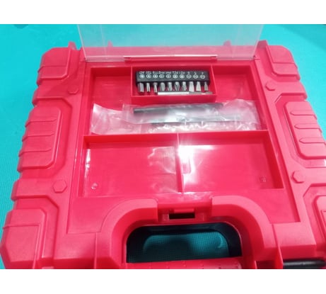 Аккумуляторная батарея не совместима с P.I.T. OnePower. Укладка внутри кейса ерундовая, просто вырезаны прорези под принадлежности, довольно мягкая и она не закреплена. Но, даже если её приклеить, то она сама по себе слабая и сминается довольно быстро. Могли бы придумать какой-нибудь "наполнитель" более жёсткий.