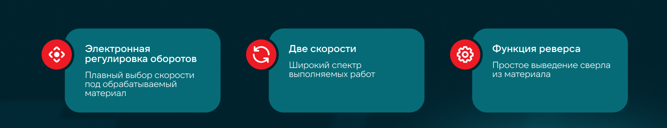 Экономия рабочего времени Дрель оснащена быстрозажимным патроном - для быстрой смены оснастки без использования дополнительного инструмента. |