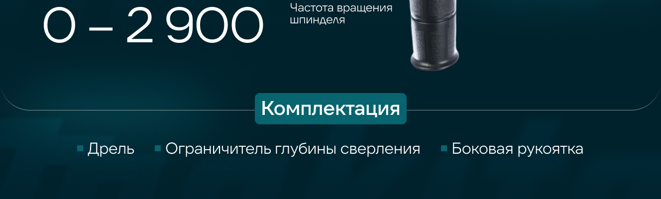 Расцепляющая муфта предохраняет инструмент от поломки при заклинивании сверла. Дрель имеет две скорости вращения шпинделя - 0-1200/0-2900 об/мин.