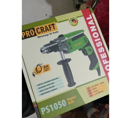 - Мощная дрель с ударной функцией: Procraft PS-1050 обладает мощностью 810 Вт и оснащена ударной функцией, что позволяет ей эффективно сверлить как дерево, металл, пластик, так и более твердые материалы, такие как кирпич и бетон