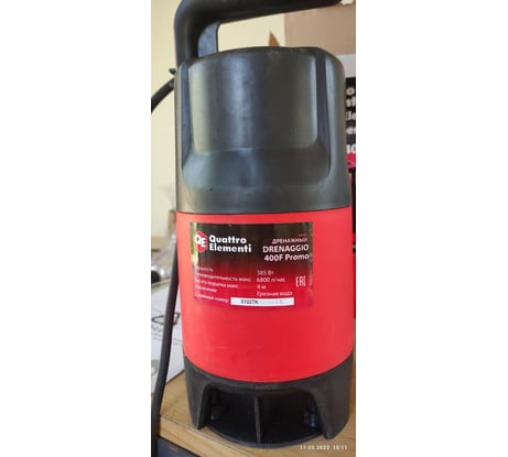 Отзывы о дренажном насосе QUATTRO ELEMENTI Drenaggio 400 F Promo 910-461