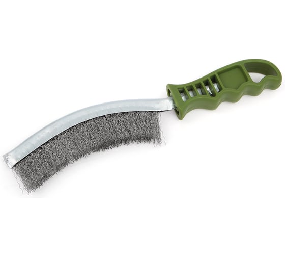 Дугообразная щётка с пластиковой рукояткой, стальная щетина Дело Техники 270291 подойдет для удаления загрязнений с металлических поверхностей. Инструмент справится с: