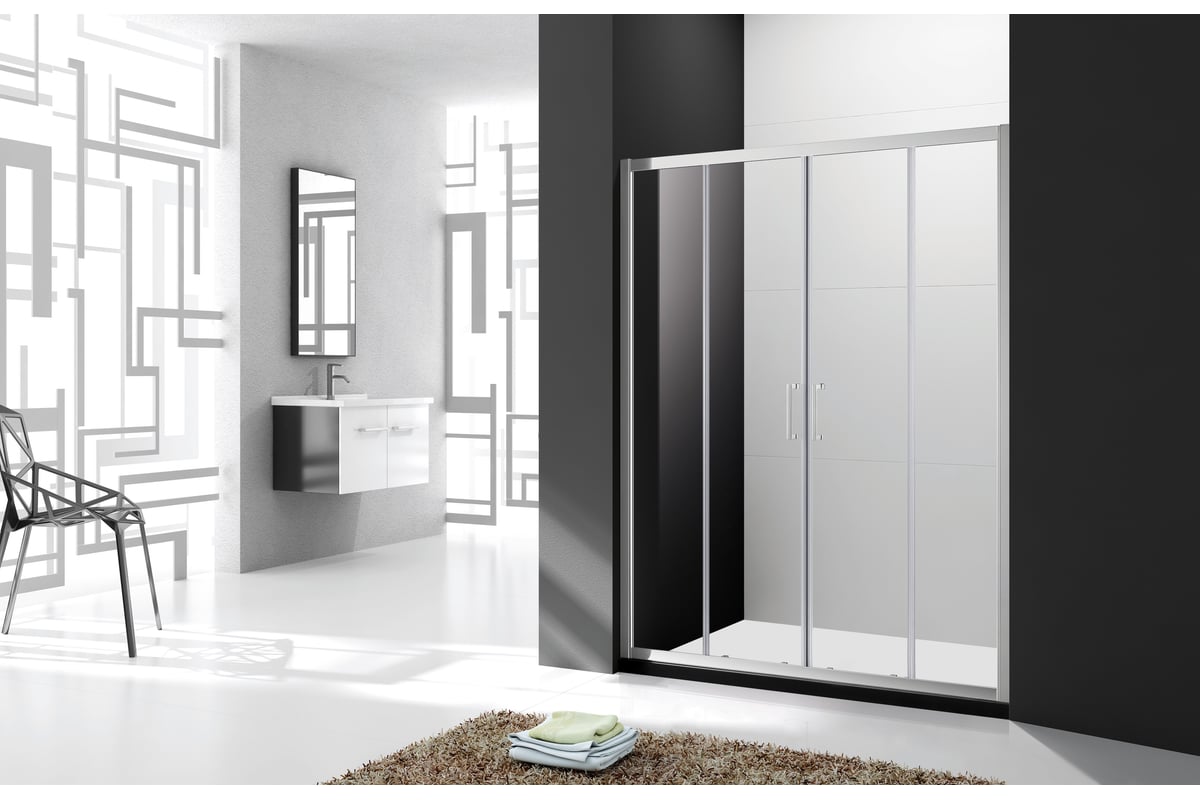 Раздвижная душевая дверь в нишу MOLVENO-BF-2-170-C-Cr-IV. Размеры по ширине: 1700 мм Высота: 1950 мм. Материал полотна двери: закаленное травмобезопасное стекло, стандарт EN12150-1:2000 толщиной 6 мм. Изделия серии MOLVENO обработаны антикальциевой защитой (IDROREPELLENTE VETRO-IV). Данное покрытие не позволяет каплям воды задерживаться на стекле и после высыхания оставлять белый кальциевый налет. Данное покрытие значительно упростит уборку изделия. Изделие укомплектовано нижним и верхним профилем. Это делает конструкцию более жесткой и предотвращает попадание воды на ролики. Материал профиля: анодированный алюминий, стандарт DIN17611 2007