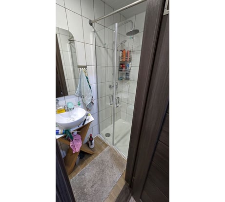 Двойные распашные двери позволяют удобно входить и выходить, обеспечивая ширину входа 825 мм. Возможность регулировки ширины позволяет адаптировать дверь под различные размеры проема, обеспечивая универсальность монтажа как на поддон, так и на пол.