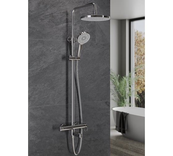 Встроенный аэратор экономит воду и, обогащая её воздухом, делает струю мягкой и без брызг. Регулируемый по высоте и наклону верхний душ (d253 мм) и ручная лейка (d125 мм, 3 режима струи) доставят истинное удовольствие при принятии водных процедур (ручная лейка и верхний душ с защитой от известкового налета).