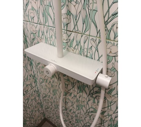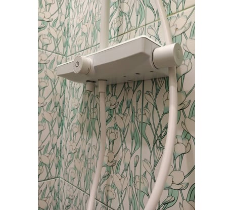 Хорошая стойка. Простой монтаж - в комплекте идет планка для установки. Потоки переключаются центральным барашком, включение/отключение кнопкой на его торце. Душевой шланг жестковат, но не критично. До этого стоял другой "немец" вдвое дороже, но этот мне понравился больше.