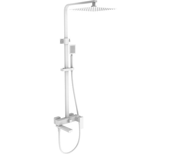 Свойства: Система относится к современному типу (тип 36), выполнена из металла и пластика с глянцевым белым покрытием. Верхний душ квадратной формы, ручная лейка – круглая. Оснащена керамическим картриджем 35 мм, стандартным подключением 1/2 и резьбовыми соединениями. Длина шланга 1500 мм, конструкция без излива, предусмотрены необходимые элементы для подключения.