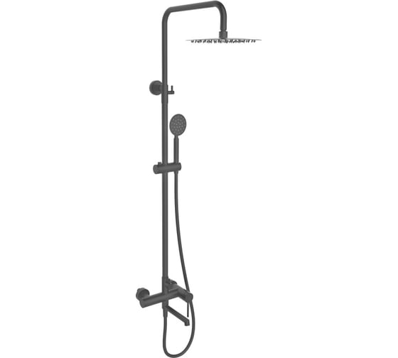 Свойства: Система выполнена из металла и пластика с матовым черным покрытием, имеет круглый верхний душ и современный тип устройства. Оснащена керамическим картриджем диаметром 35 мм, стандартной резьбой 1/2 и наличием резьбовых соединений. Длина шланга составляет 1500 мм.