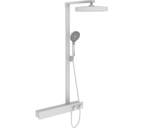 Свойства: Система относится к современному типу, выполнена из металла и пластика с глянцевым белым покрытием. Круглый верхний душ и ручная лейка подключаются через стандартную резьбу 1/2, длина шланга составляет 1500 мм. Встроенный термостатический механизм и керамический картридж 35 мм обеспечивают стабильную температуру и плавное управление, конструкция без излива.