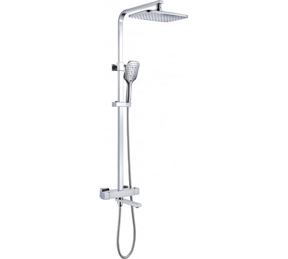 Душевая система с термостатом и квадратным верхним тропическим душем создана для комфортного и современного душевого пространства. Комбинация верхнего душа и ручной лейки обеспечивает удобство ежедневного использования, а хромированная глянцевая поверхность визуально облегчает интерьер и легко сочетается с другой сантехникой.