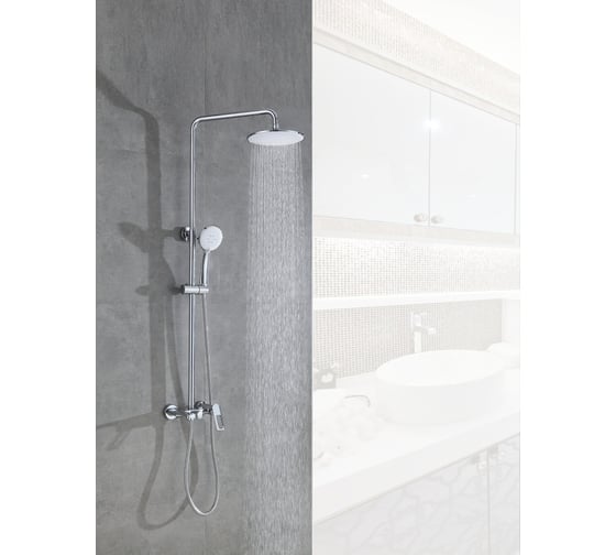 Душевая система с верхним душем и ручной лейкой в хромированном глянцевом исполнении создаёт современный акцент в ванной комнате и обеспечивает комфортное водоснабжение без лишних деталей. Компактная конструкция без излива подходит для душевых кабин и зон, где важны эргономика и аккуратный внешний вид.