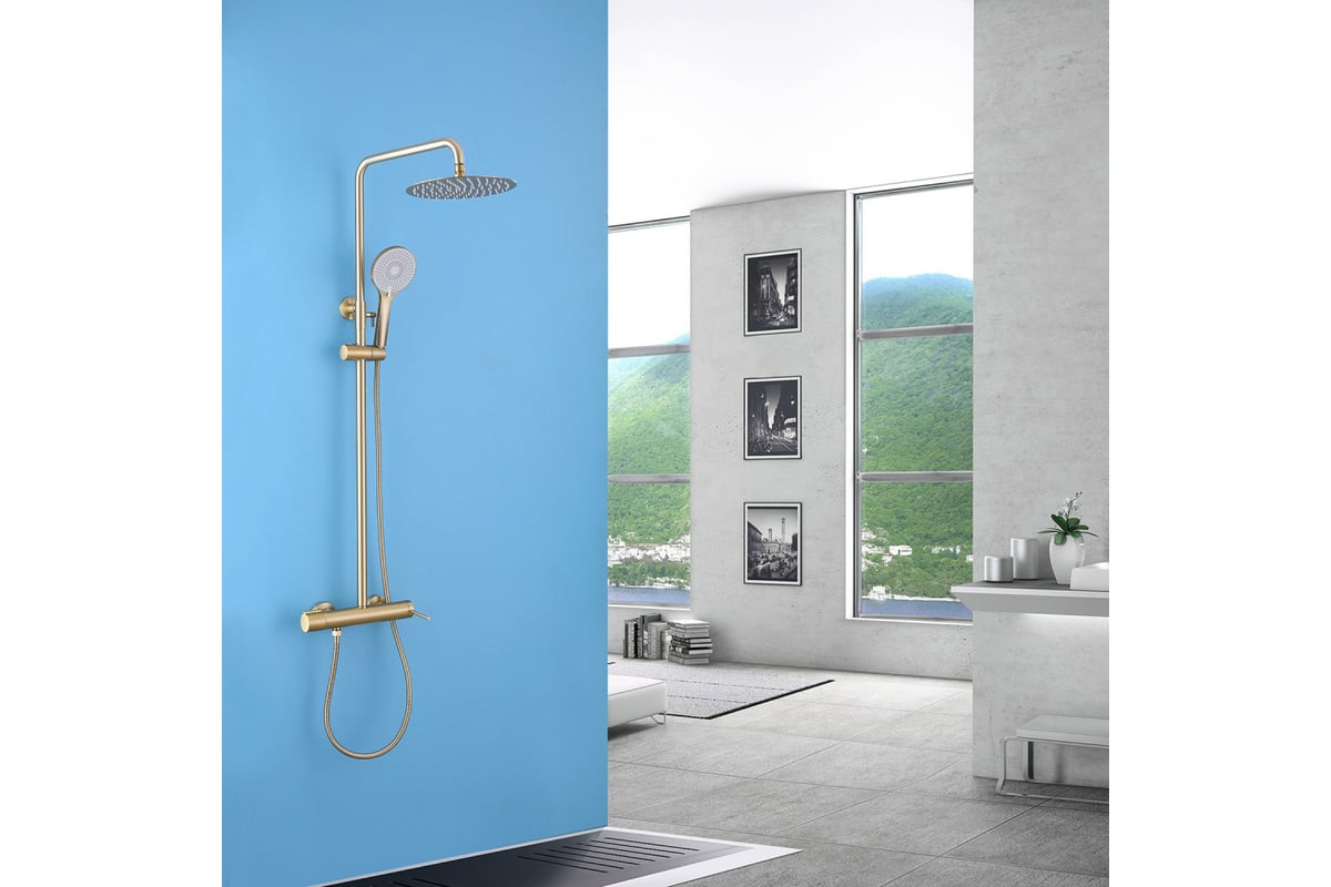 Душевая стойка ABBER Emotion с изливом, золото матовое AF8816G