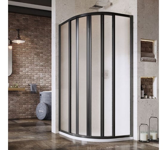 Душевое ограждение Ravak четверть круга Supernova 90x90 с раздвижными дверьми, черный профиль 195, витраж стекло Grape (SKKP6) 3207O302ZG