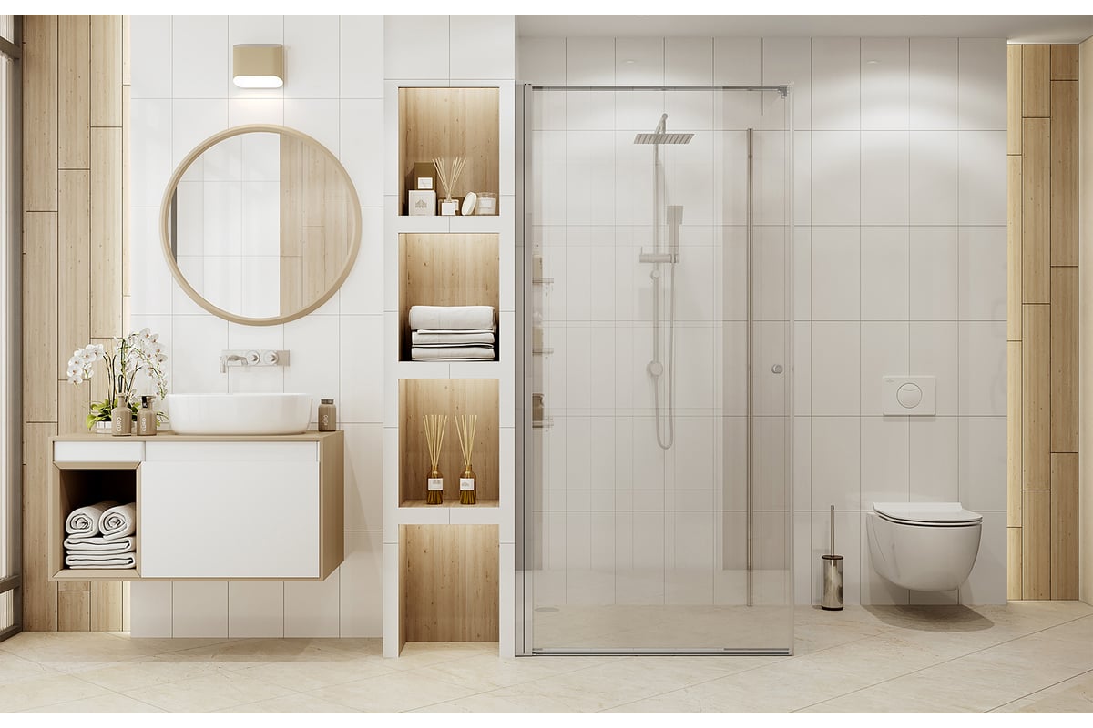 Душевое ограждение со свободным боковым входом и небольшой перегородкой по ширине. Передовые технологии Ambassador и использование материалов стекольной промышленности с низким содержанием оксидов железа позволяют производить безопасное закаленное стекло CrystalPure с особым блеском и исключительной прозрачностью. Вы получаете исключительно кристальную прозрачность стекла согласно европейскому стандарту PN:EN 12150:1. Невидимый полимерный защитный слой EasyClean обладает гидрофобными свойствами, благодаря чему капли воды не удерживаются на поверхности стекла и стекают. Рекомендуем монтировать ограждения непосредственно на пол и выдвигать на передний план интерьер керамической плитки. Конструкция ограждения изготовлена из анодированного термостойкого алюминия и имеет презентабельный блеск. Квадратные уголки дополнительно фиксируют ограждение.