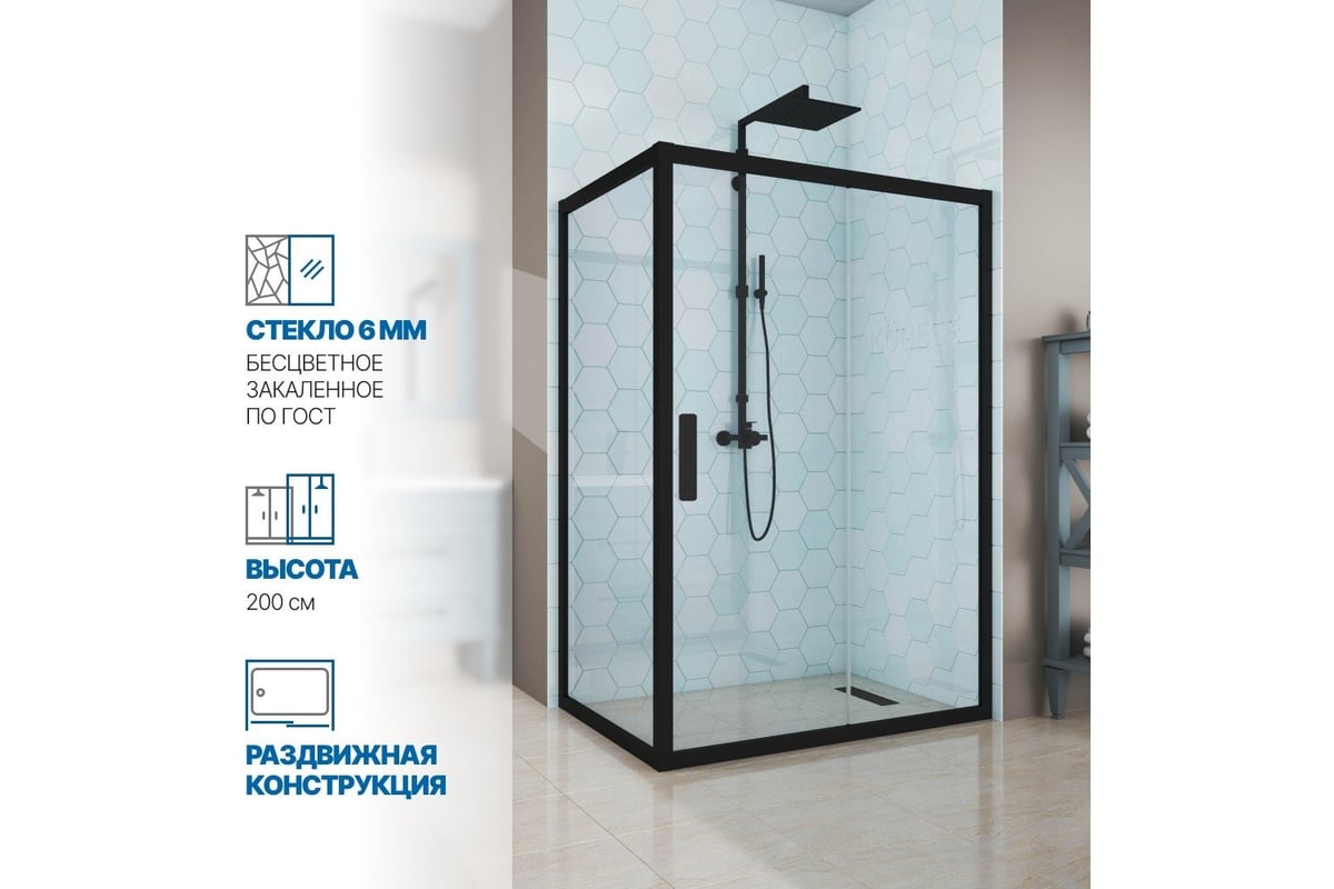 Душевой уголок GuteWetter gwmpkb019r 120x95x200 см, профиль черный матовый, стекло бесцветное закаленное 6 мм 4698032694180