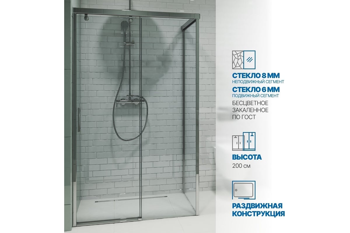 Сопутствующие товары для душевого уголка GuteWetter gwmpslrc863b 110x150x200 см, профиль хром блестящий, стекло бесцветное закаленное 8/6 мм