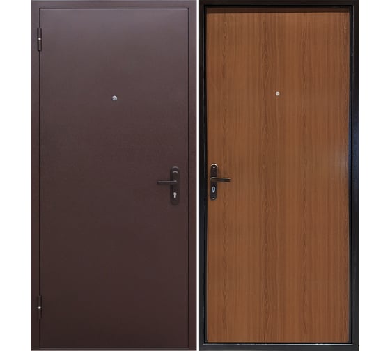 Дверное полотно с утеплением (пенополистирол) Короб 52 мм Петли на подшипниках — 2 шт. Замок BORDER + ручка на планке Противосъёмные штыри — 2 шт. Контур уплотнения — D-профиль (1 контур)