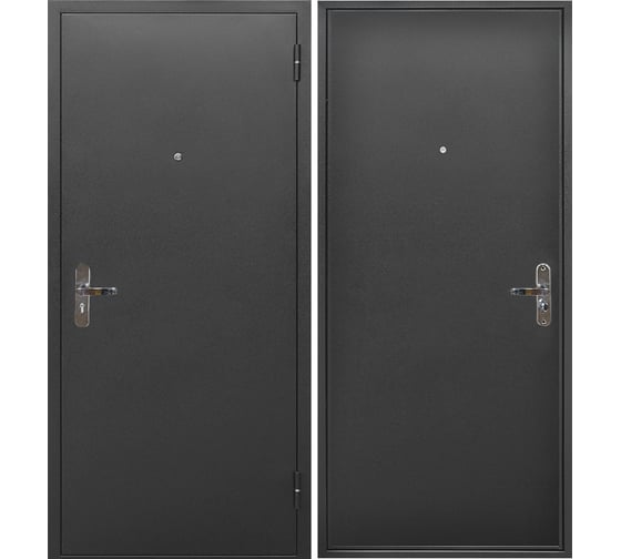 Дверное полотно с утеплением (пенополистирол) Короб 52 мм Петли на подшипниках — 2 шт. Замок BORDER + ручка на планке Противосъёмные штыри — 2 шт. Контур уплотнения — D-профиль (1 контур)