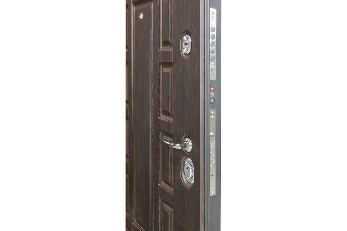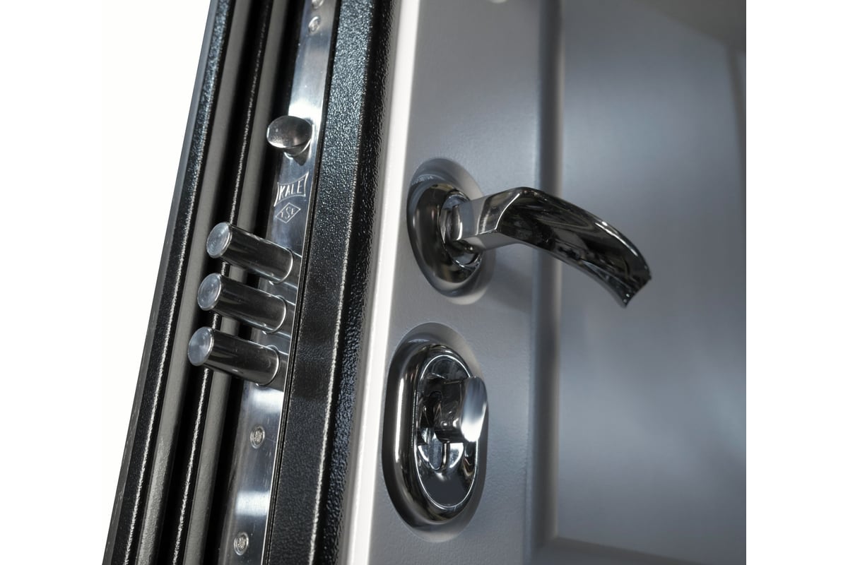 В комплект с дверью входят: противосъемные ригеля, тройной контур уплотнителя, металлический эксцентрик, глазок с широким углом обзора.