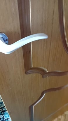 Цвет ручки, установленной на уличной двери, находящейся глубоко под навесом и не подвергающейся воздействию осадков, изменился. Через месяц появилась заметная желтизна. Ручка с другой стороны этой же двери сохранилась.
