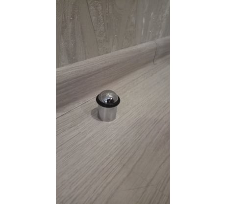 Для моей ситуации оказался низковат. Изначально не подумала,что дверь должна ударяться в резиновую прокладку, которая стоит чуть ниже,чем край стопора. Пришлось заменить саморез и сделать снизу проставку