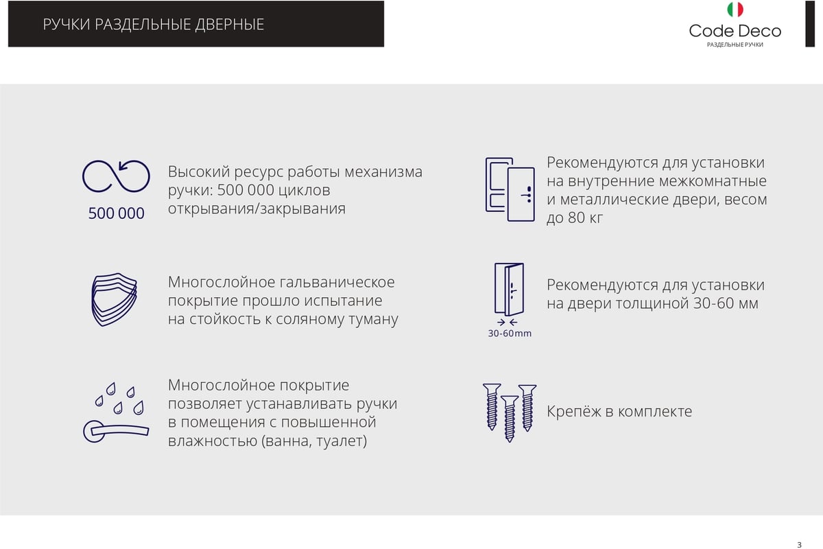 Технические характеристики дверных ручек Code Deco