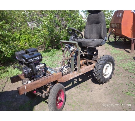 Электростартер, встроенный генератор, мощности предостаточно, исполнение PRO с усиленным креплением топливного бака. Пишу отзыв после двух сезонов эксплуатации мотоблока с этим мотором. Тянет и косилку и мульчер, с прицепом бесподобен. Работа с плугом, окучником и культиватором изменилась в корне, расход топлива минимальный при очень широком диапазоне оборотов с максимальной тягой. Эксплуатирую с четырьмя оригинальными колесами от мотоблока, т.е. две спарки с расширителем и комплектом дополнительных ступиц от Красного Октября, слева и справа. Тяга как у паровоза, мощнее только на гусеницах...