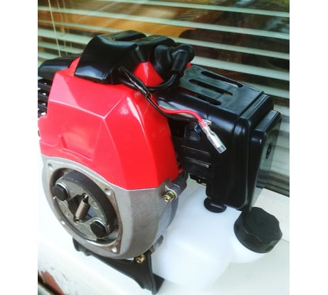 Двигатель бензиновый 2х-тактный, 1-цилиндровый, оснащён воздушным охлаждением. Изготовлен из качественных деталей.