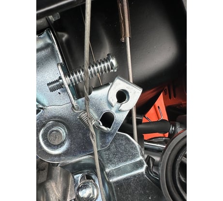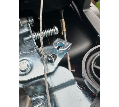 Для крепления тросика газа не было специального винтового зажима, пришлось снять со старого двигателя.