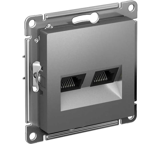 Механизм Systeme Electric (ранее Schneider Electric) серии AtlasDesign в цвете сталь двойной розетки компьютерной с разъёмом RJ45 категория 5е.