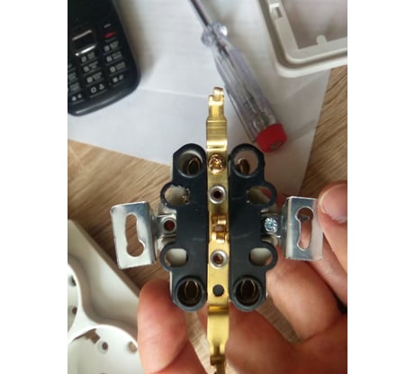 Понравились как устанавливаются зажимы для проводов: есть два отверстия в задней панели (на каждый контакт), в которые вставляются концы провода и зажимаются сбоку. Удобно в установке и надежное крепление, как по моему.
