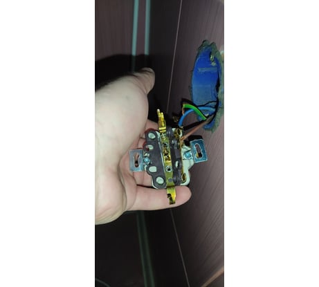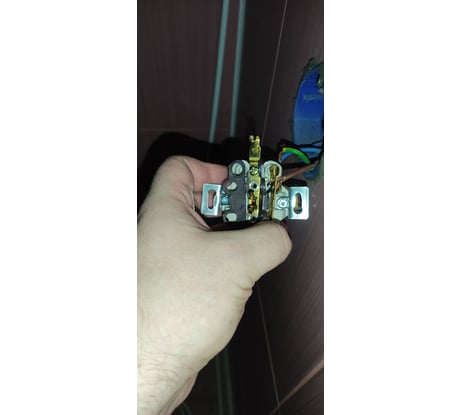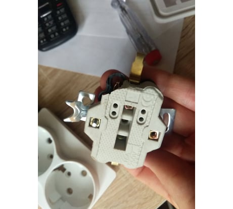 Заземление устанавливается сбоку и провод чуть мешает вставить розетку в коробку.