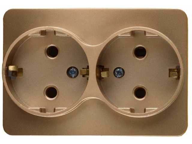 Расходные материалы для розетки СВЕТОЗАР ГАММА 2-мест., с/з, золотой металлик, 16А/~250В SV-54107-GM