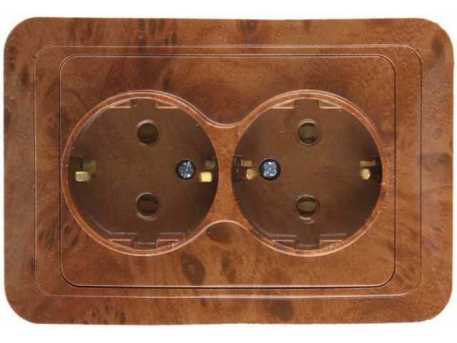 Расходные материалы для розетки СВЕТОЗАР ГАММА 2-мест., с/з, орех, 16А/~250В SV-54107-N
